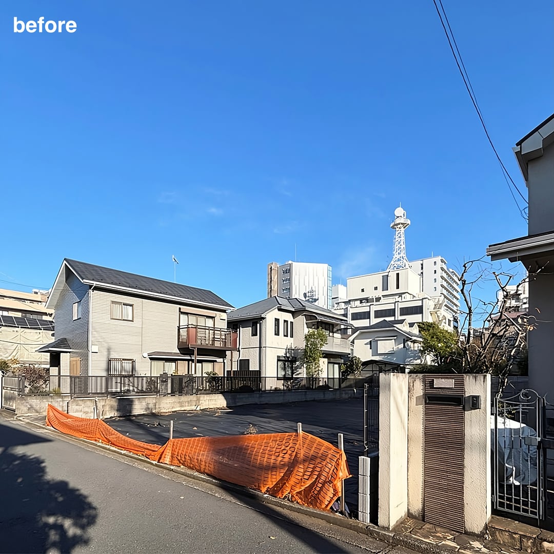通りに面した下階部分は、木製の壁とシャッターによって高いプライバシーが確保されています。